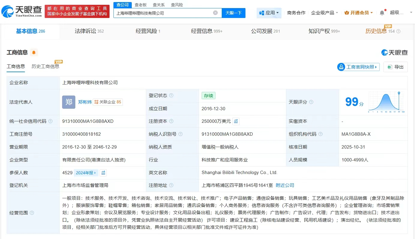 摘要: 近日,上海哔哩哔哩科技有限公司发生工商变更。